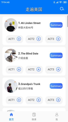 走遍美国app是根据经典英语教材《走遍美国》改编的一款英语学习app。大家只需要打开app就能看到课文和原声台词同步播放,还能随时切换中英文对照。遇到不认识的单词长按就能查释义,自动加入云端生词本,复习时还会按记忆规律给你排顺序,特别省心。最厉害的是它的跟读和语音评测功能,对着手机练口语能实时打分,就像有个外教在旁边纠音,社恐人士也能大胆开口。六蓝游戏网给大家分享走遍美国手机版下载安装,推荐正在学习英语的朋友们来下载使用哦!