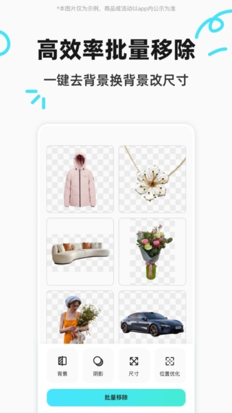 【批量移除】允许50张图片同步处理,一键换背景、改尺寸、应用模板,便捷专业高效。