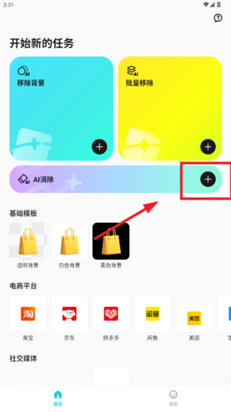 登录成功后,返回首页,选择所需功能,比如ai消除,如图: