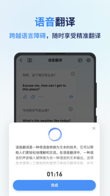 同声传译王是一款多功能的翻译软件,产品内置了高智能翻译模块,具备同声传译、语音翻译、AI练口语、文档翻译、拍照翻译、文字翻译、音频翻译和视频翻译等功能!