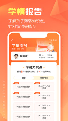 3、孩子的学习记录,扫题答疑情况,即刻同步到App
