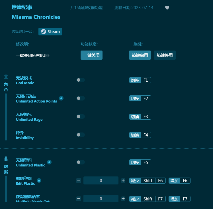 《迷瘴纪事修改器》是一款非常好用的游戏修改器工具,为游戏《迷瘴纪事》打造,帮助玩家在游戏中末日废土世界生存冒险。迷瘴纪事修改器拥有无敌模式,无限行动点,无限怒气,隐身,无限塑料等丰富强力辅助,可免费使用,让玩家的游戏体验更佳!感兴趣的朋友不要错过,六蓝游戏网推荐大家下载体验!