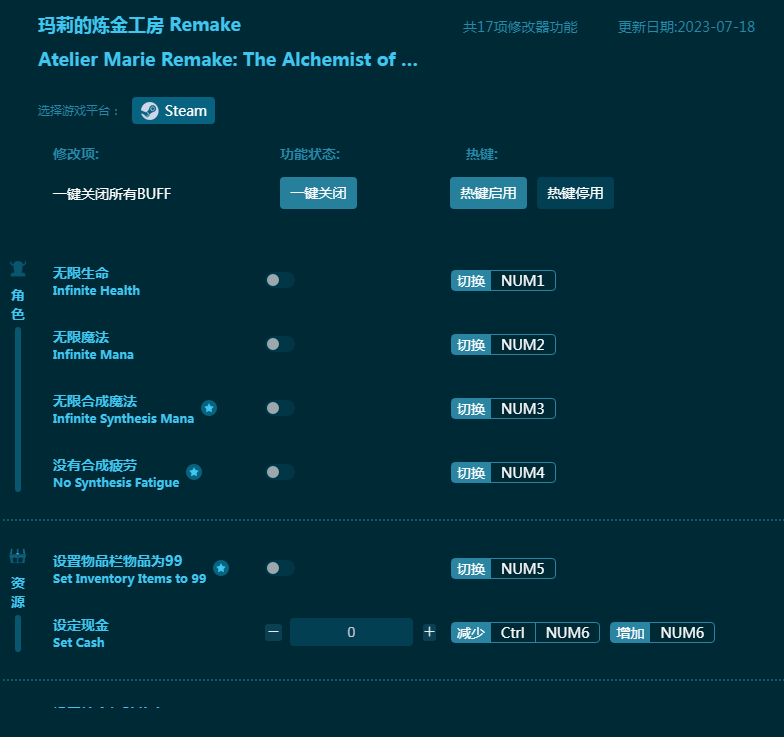 玛莉的炼金工房remake修改器软件说明