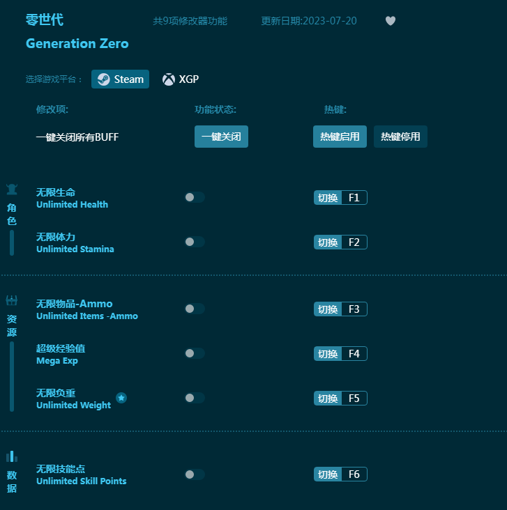 5、等待显示“BUFF加持成功”后,我们就可以在零世代游戏中使用按键来快速激活和关闭对应的修改器功能了