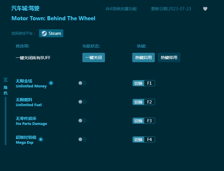 5、等待显示“BUFF加持成功”后,我们就可以在汽车城市驾驶游戏中使用按键来快速激活和关闭对应的修改器功能了