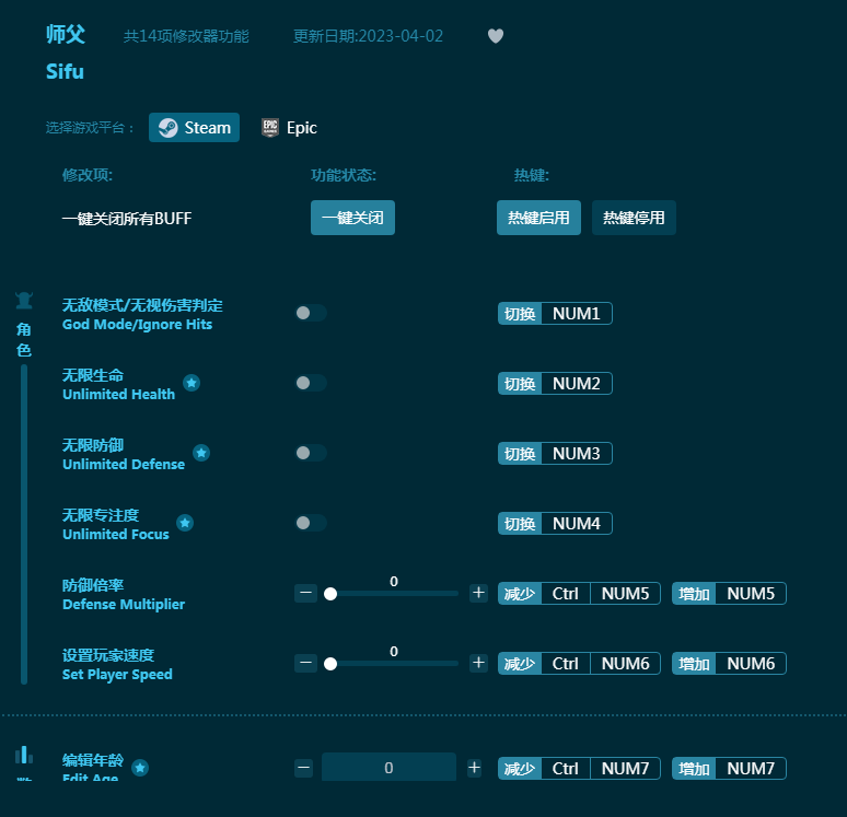 《师夫》是一款中华武术动作格斗游戏,使用各项格斗技为家人报仇。游戏难度也是非常硬核。而这款《师夫修改器》能帮助玩家降低游戏难度,提供无敌模式,无限生命,无限防御,无限专注度,防御倍率,设置年龄等辅助功能,帮助玩家顺利复仇,游戏战斗更爽快!感兴趣的朋友不要错过,六蓝游戏网推荐大家下载体验!