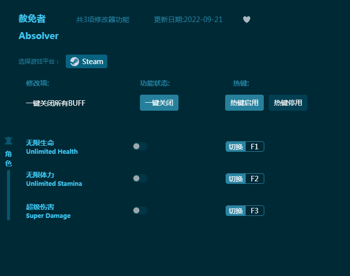 4、先运行“赦免者”游戏再运行修改器,游戏运行后点击右侧的“加个BUFF”按钮激活修改器。