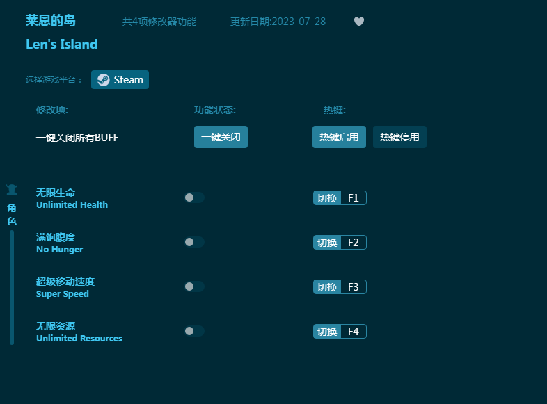 4、先运行“莱恩的岛”游戏再运行修改器,游戏运行后点击右侧的“加个BUFF”按钮激活修改器。