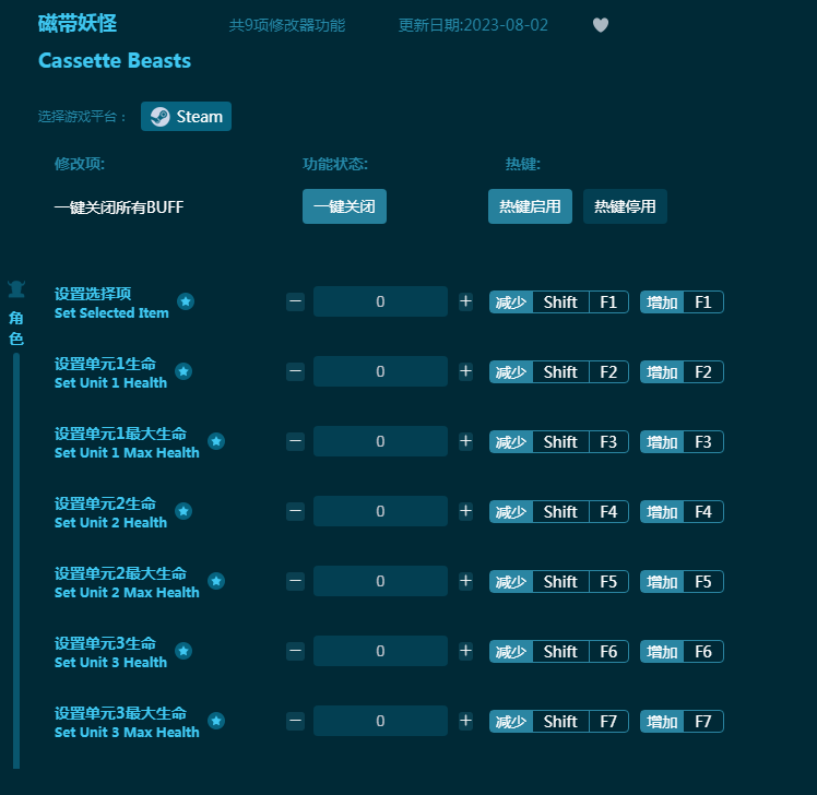 5、等待显示“BUFF加持成功”后,我们就可以在磁带妖怪游戏中使用按键来快速激活和关闭对应的修改器功能了