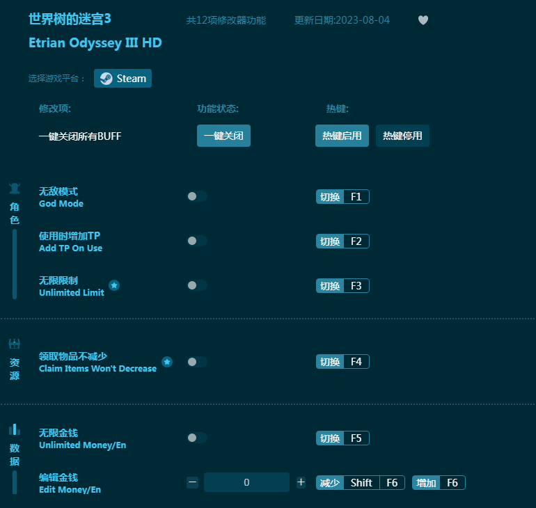 世界树的迷宫3HD修改器软件说明