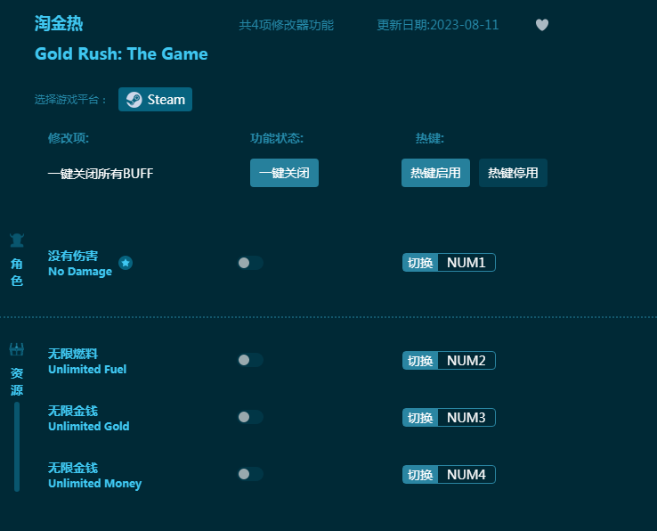 《淘金热》是一款模拟淘金游戏,玩家扮演黄金矿场的工人开始你的淘金之旅!这款《淘金热修改器》能为玩家提供多项游戏辅助功能,包括没有伤害,无限燃料,无限金钱等等,玩家使用获得更多游戏资源,淘金更轻松!感兴趣的朋友不要错过,六蓝游戏网推荐大家下载体验!