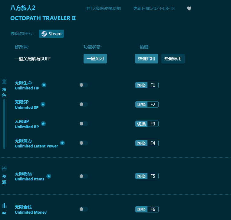 《歧路旅人2》又叫八方旅人2,是最新上线的多角色冒险故事。这款《歧路旅人2修改器》为游戏玩家们带来无限生命,无限SP,无限BP,无限潜力,无限物品,无限金钱等丰富游戏辅助,玩家免费使用,帮助探索更多游戏内容,游戏体验更佳!感兴趣的朋友不要错过,六蓝游戏网推荐大家下载体验!