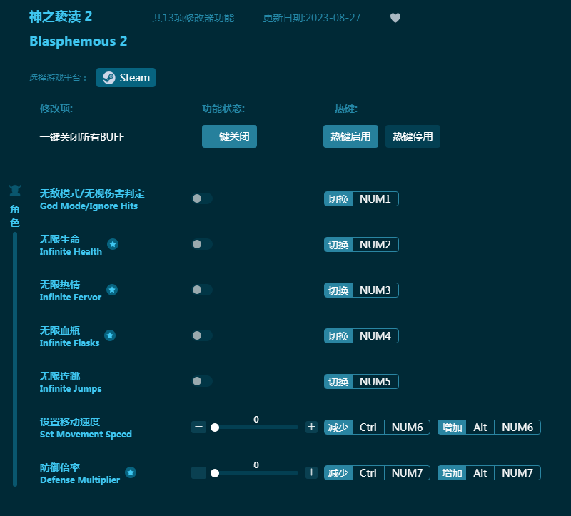 《神之亵渎2修改器》是一款最新的游戏修改器,专为游戏《神之亵渎2》打造。神之亵渎2修改器内置无敌模式,无限生命,无限热情,无限血瓶,无限连跳,防御倍率等强力游戏辅助。使用游戏辅助玩游戏,更爽快刺激!感兴趣的朋友不要错过,六蓝游戏网推荐大家下载体验!