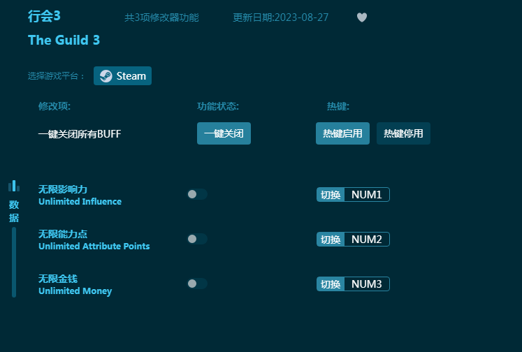 《行会3修改器》带来一款免费的多功能游戏修改器,为游戏《行会3》的玩家们提供多功能游戏辅助。这里有无限影响力,无限能力点,无限金钱等强力辅助,玩家自由使用,游戏更愉快轻松!感兴趣的朋友不要错过,六蓝游戏网推荐大家下载体验!