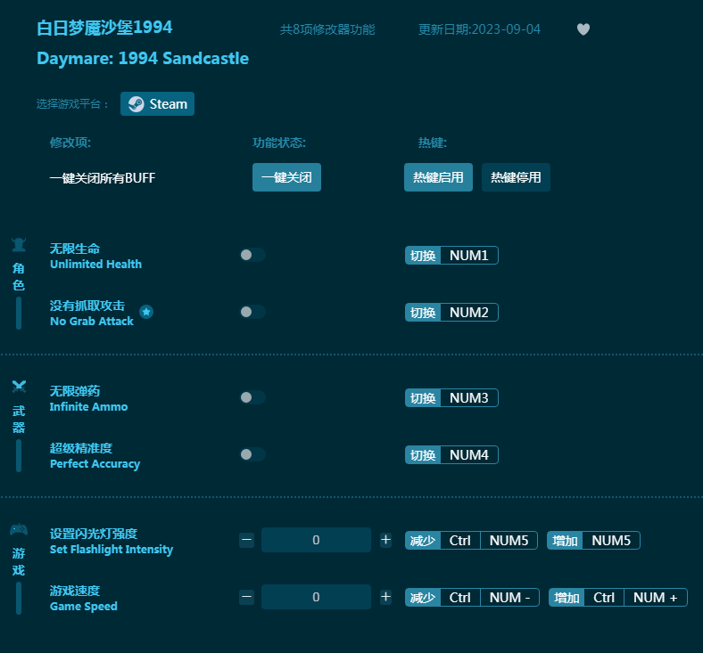 5、等待显示“BUFF加持成功”后,我们就可以在白日梦魇沙堡1994游戏中使用按键来快速激活和关闭对应的修改器功能了