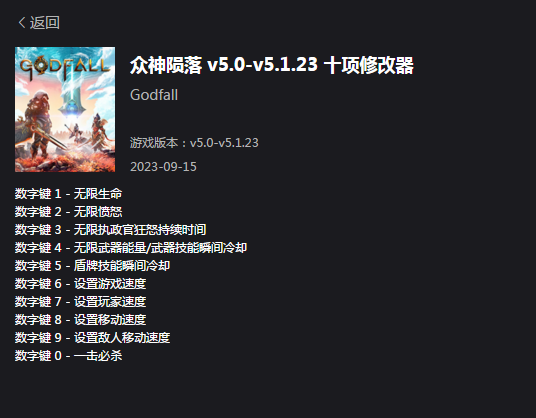 《众神陨落修改器》是一款专为《众神陨落》游戏玩家们开发的风灵月影修改器。内置丰富强力修改功能,包括无限生命,无限愤怒,一击必杀,无需冷却,无限武器能量等等,支持免费使用。为你的游戏角色增加BUFF,游戏战斗更爽快!感兴趣的朋友不要错过,六蓝游戏网推荐大家下载体验!