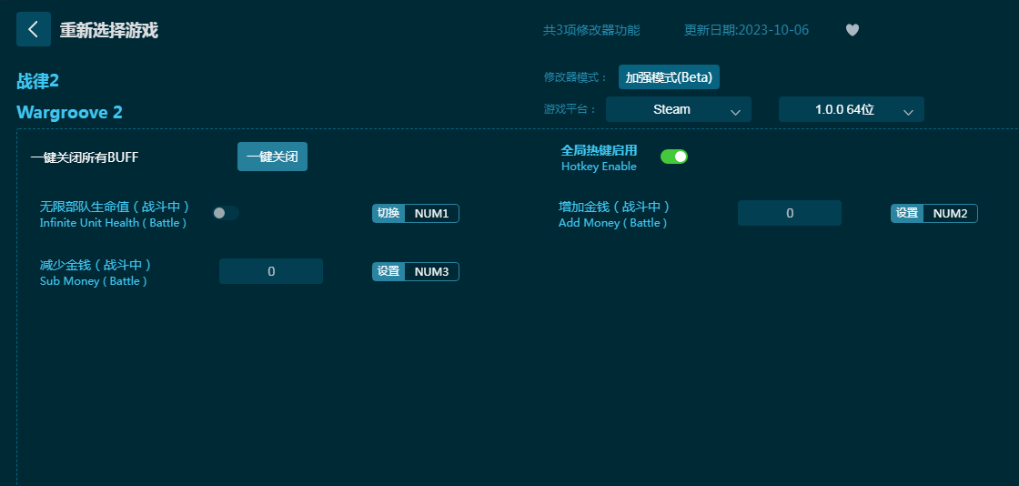 5、等待显示“BUFF加持成功”后,我们就可以在战律2游戏中使用按键来快速激活和关闭对应的修改器功能了