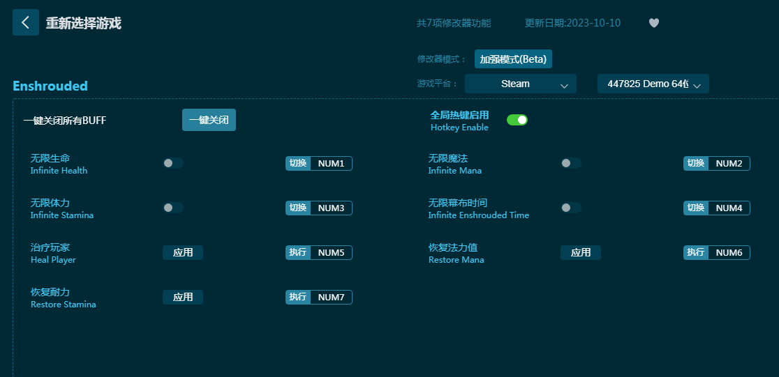5、等待显示“BUFF加持成功”后,我们就可以在Enshrouded游戏中使用按键来快速激活和关闭对应的修改器功能了