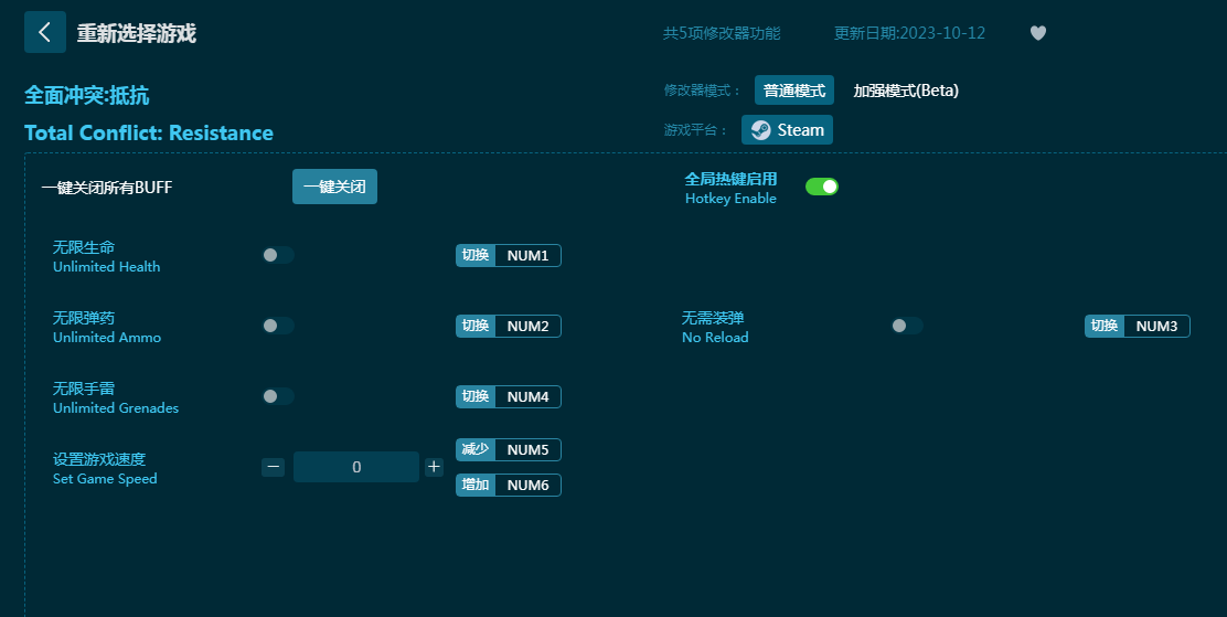 《全面冲突抵抗修改器》为同名游戏《全面冲突抵抗》打造,全球战略策略玩法,硬核真实。这款《全面冲突抵抗修改器》帮助玩家游戏更轻松,提供无限生命,无限弹药,无需装弹,无限手雷等强力功能使用。一键开启关闭,降低游戏难度更轻松通关!感兴趣的朋友不要错过,六蓝游戏网推荐大家下载体验!