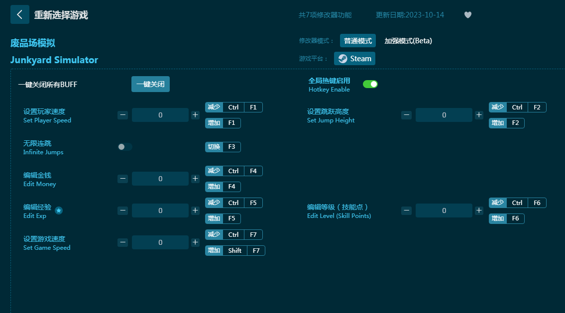 5、等待显示“BUFF加持成功”后,我们就可以在废品场模拟游戏中使用按键来快速激活和关闭对应的修改器功能了
