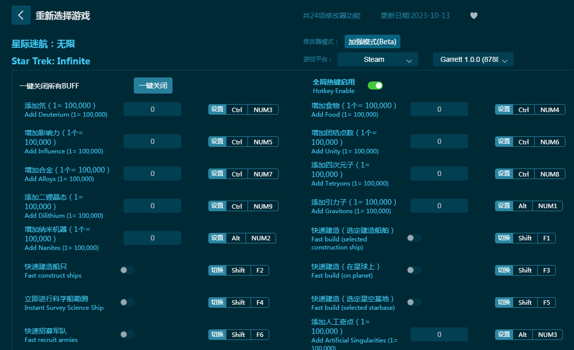 5、等待显示“BUFF加持成功”后,我们就可以在星际迷航无限游戏中使用按键来快速激活和关闭对应的修改器功能了