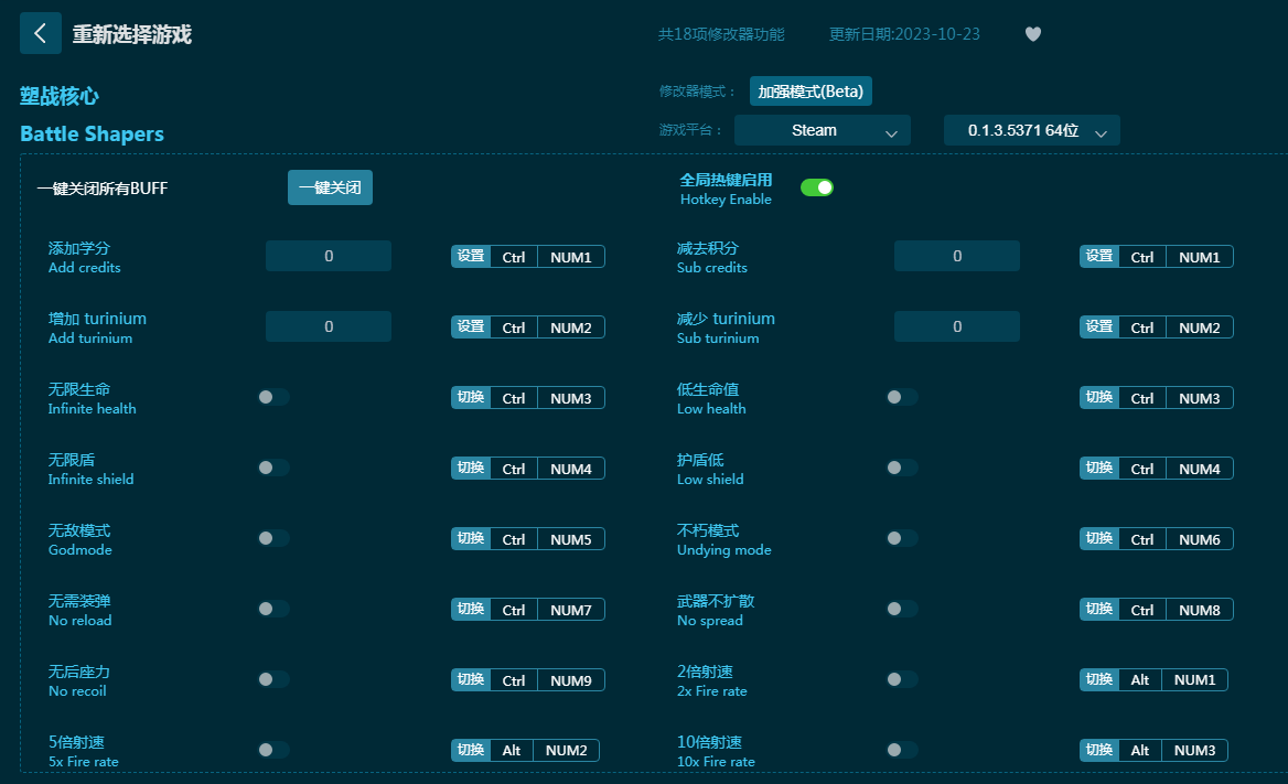 《塑战核心》一款能打拳的rouge动作射击游戏,扮演塑造师对抗强大的邪恶领主。这款《塑战核心修改器》能为你带来十八项游戏辅助功能,有无限生命,无限盾,无敌模式,不朽模式,无需装弹,无后坐力,武器不扩散等功能使用,帮助玩家游戏更爽快!感兴趣的朋友不要错过,六蓝游戏网推荐大家下载体验!