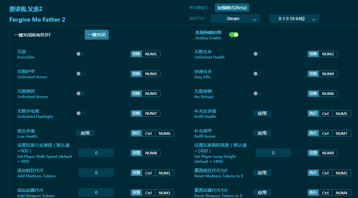 《原谅我父亲2》是经典克苏鲁风格的FPS射击游戏,全新第二作面对数不清的敌人战斗。这款《原谅我父亲2修改器》能给玩家最大游戏帮助,提供无敌,无限护甲,无限生命,快速击杀,无限弹药,无需装弹,无限手电筒等众多辅助功能,免费使用,战斗更轻松爽快!感兴趣的朋友不要错过,六蓝小编推荐大家下载体验!