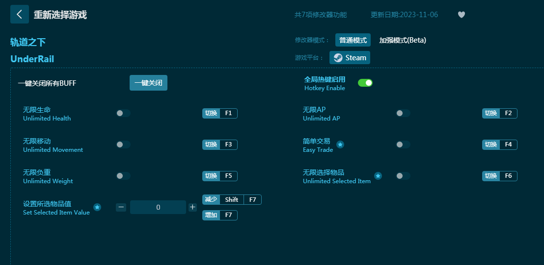 《轨道之下》是一款非常有特色的末日回合制游戏,多变策略玩法给你更刺激的末日享受。而这款《轨道之下修改器》由六蓝游戏网带来,是轨道之下游戏专用修改器,内置无限生命,无限移动,无限AP,无限选择物品。无限负重等七项功能使用,方便简单,让你的游戏体验更轻松!感兴趣的朋友不要错过,六蓝游戏网推荐大家下载体验!