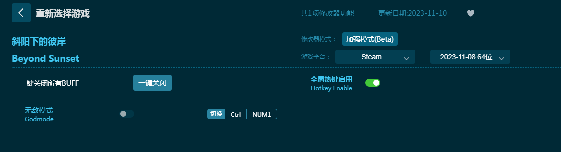 4、先运行“斜阳下的彼岸”游戏再运行修改器,游戏运行后点击右侧的“加个BUFF”按钮激活修改器。