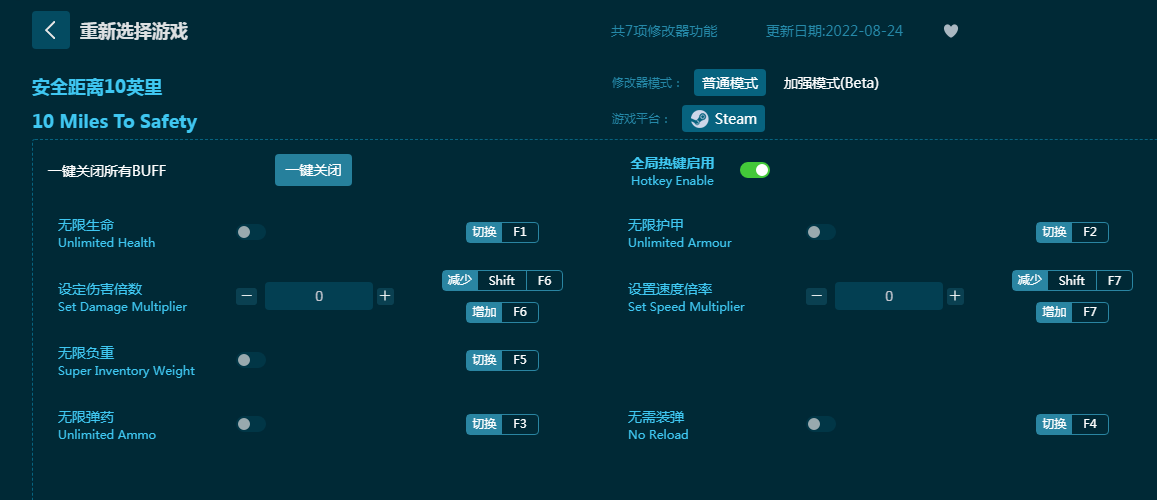 《安全距离10英里修改器》是一款强力修改器工具,提供免费强力的十项修改功能。为《安全距离10英里》玩家们提供无限生命,无限负重,无限弹药,无限护甲,无需装弹,伤害倍数等等,丰富功能自由选择使用,帮助玩家在丧尸末日中安全生存,游戏体验更佳!感兴趣的朋友不要错过,六蓝小编推荐大家下载体验!