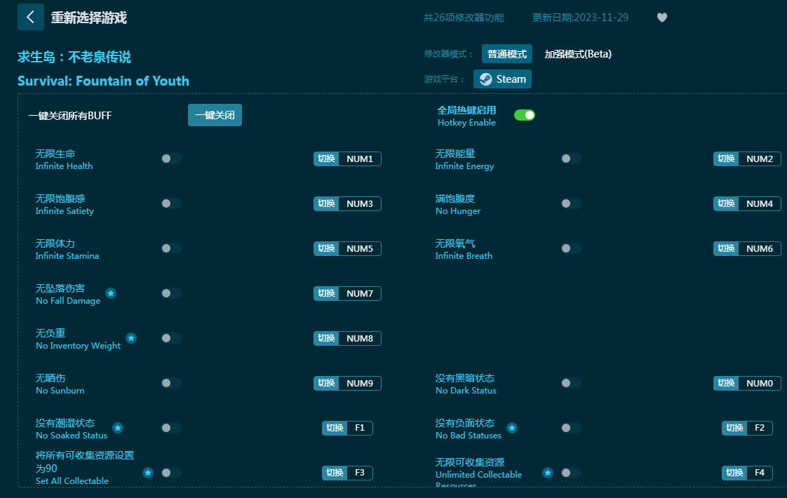 5、等待显示“BUFF加持成功”后,我们就可以在求生岛不老泉传说游戏中使用按键来快速激活和关闭对应的修改器功能了