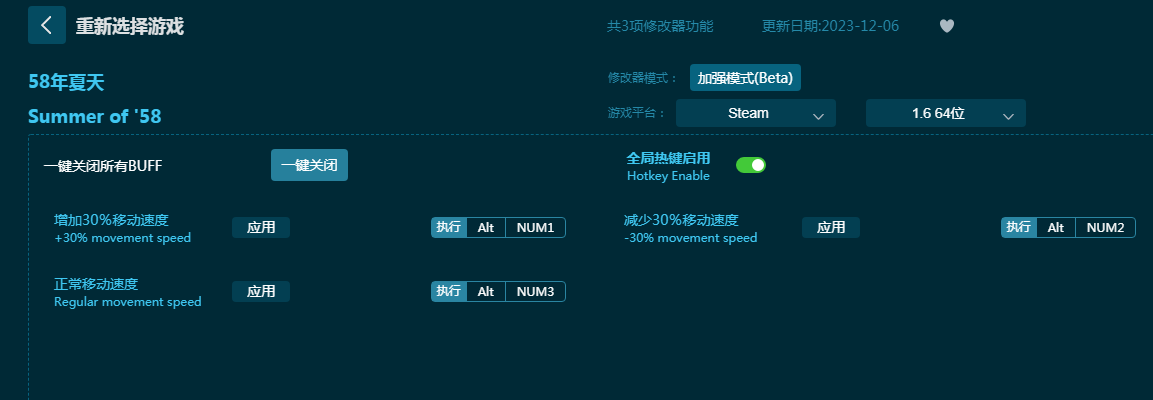 《58年夏天》是一款非常火爆的心理恐怖冒险游戏,前往特殊营地冒险,你能解开这里的真相吗!六蓝小编为玩家们提供《58年夏天修改器》下载,内置增加游戏速度的强力修改功能,帮助玩家更轻松体验游戏,游戏体验更佳!感兴趣的朋友不要错过,六蓝小编推荐大家下载体验!