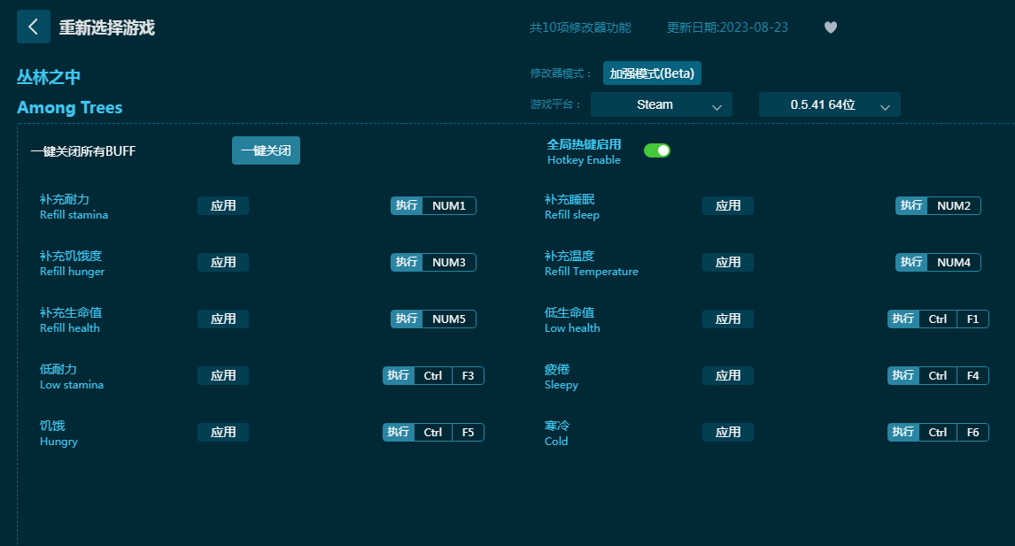 《丛林之中修改器》为大家带来一款免费的修改器,为游戏《丛林之中》出品。玩家在游戏中森林求生,自由探索冒险。有了这款丛林之中修改器后,可以获得无限耐力,无限睡眠,无限饥饿度,无限温度,无限生命等丰富功能使用。帮助玩家游戏体验更佳!感兴趣的朋友不要错过,六蓝小编推荐大家下载体验!