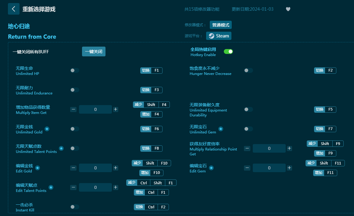 《地心归途》是一款非常好玩的国产沙盒冒险探索建造游戏,作为末日后幸存者探索前文明科技。六蓝小编还提供《地心归途修改器》下载,帮助玩家获得无限生命,饱食度不减少,无限耐力,无限宝石,无限天赋点,无限金钱,一击必杀等十五项辅助功能。帮助玩家降低游戏难度,游戏体验更佳!感兴趣的朋友不要错过,六蓝小编推荐大家下载体验!