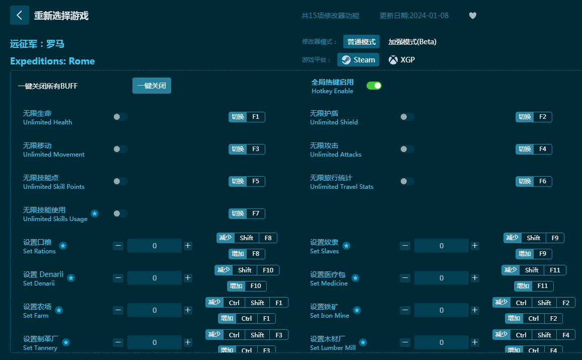 《远征军罗马修改器》是一款专为远征军系列游戏《远征军罗马》打造的游戏修改器。远征军罗马修改器内置:无限生命,无限护盾,无限移动,无限技能点,无限攻击,无限旅行,无限技能使用以及各种资源数量设置等。远征军罗马修改器共十五项修改功能,全部免费使用,让玩家在游戏里统一欧洲!感兴趣的朋友不要错过,六蓝小编推荐大家下载体验!