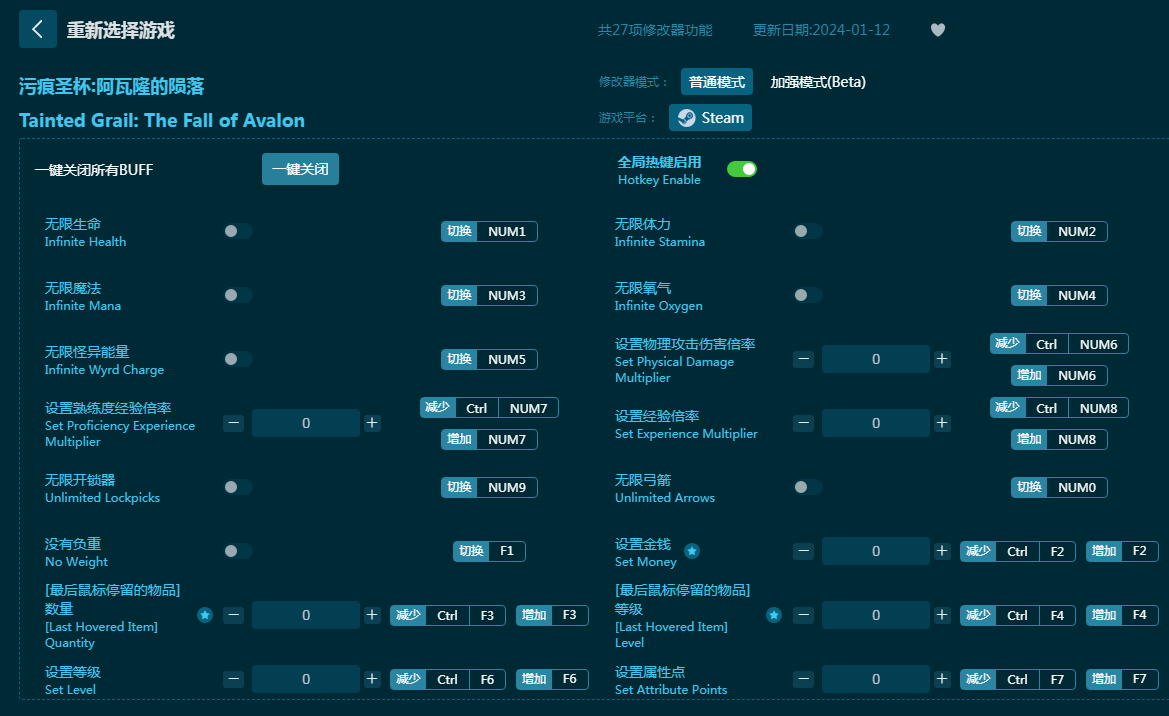 污痕圣杯阿瓦隆的陨落修改器软件说明