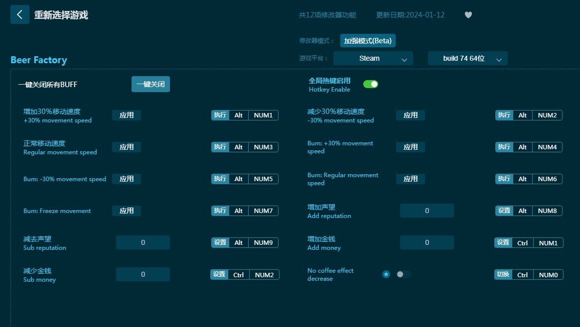 《Beer Factory啤酒工厂》是一款啤酒厂模拟经营游戏,带你体验不一样的啤酒人生。这款《Beer Factory修改器》专为游戏打造,内置增加移速,增加声望,增加金钱等强力辅助功能,能够帮助玩家更轻松经营你的酒厂,游戏体验更佳!感兴趣的朋友不要错过,六蓝小编推荐大家下载体验!