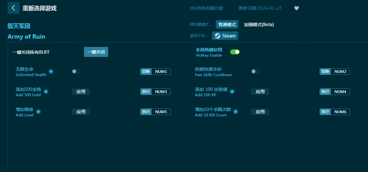 毁灭军团修改器软件说明
