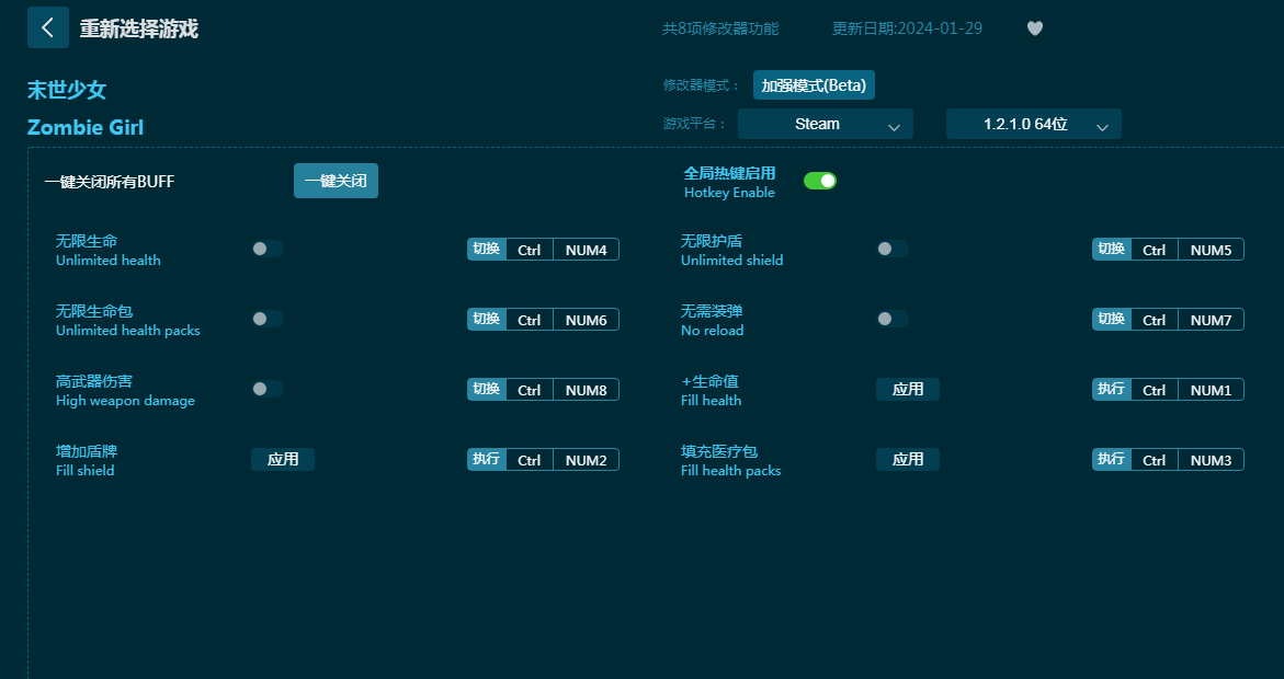 《末世少女》是一款国产末日动作射击游戏,操控少女对抗丧尸危机。这款《末世少女修改器》是专为玩家出品的游戏辅助工具,内置无限生命,无限护盾,无需装弹,高伤害,增加盾牌等游戏辅助功能,玩家自由选择使用,帮助玩家轻松游戏通关,游戏体验更佳!感兴趣的朋友不要错过,六蓝小编推荐大家下载体验!