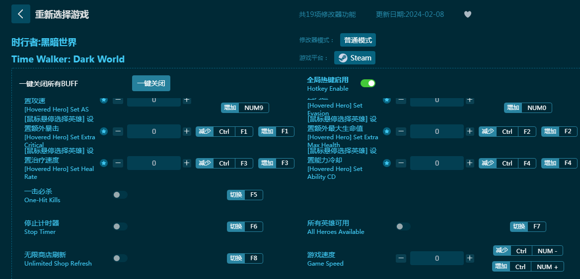 《时行者黑暗世界》是一款像素风肉鸽自走棋游戏,组建你的冒险小队进行探险。这款《时行者黑暗世界修改器》专为游戏打造,提供玩家无限生命,无限金钱,伤害倍数,无限水晶,一击必杀,所有英雄可用,无限商店刷新等丰富功能使用,让玩家战斗冒险更轻松!感兴趣的朋友不要错过,六蓝游戏网推荐大家下载体验!