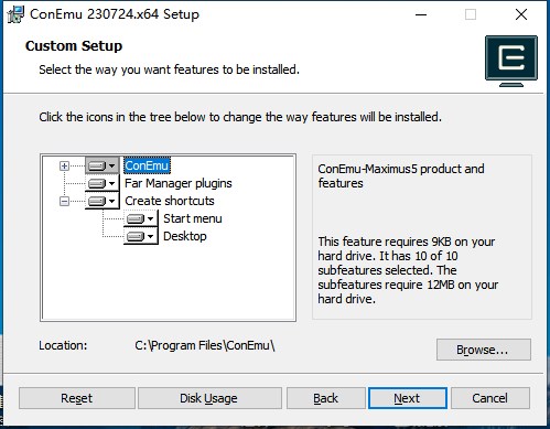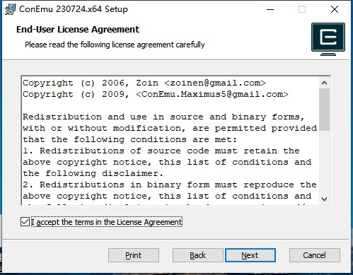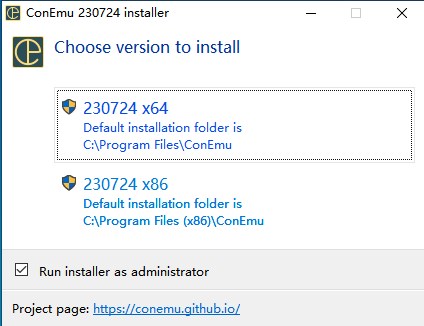 1、解压数据包用鼠标双击“ConEmu.exe”打开,选择合适自己电脑系统的安装,小编的电脑是win64的,所以点击第一个即可