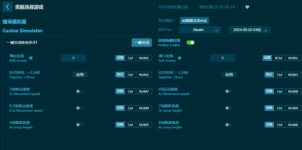 《赌场模拟器》是一款超逼真的赌场模拟经营游戏,成为赌场老板打造娱乐帝国。而这款《赌场模拟器修改器》能让玩家在游戏中成为赌神,提供增加金钱、设置时间、设置移动速度、设置跳跃高度的游戏辅助,帮助玩家赌场越做越大,游戏体验更佳!有需要的朋友不要错过,六蓝游戏网推荐大家下载体验!