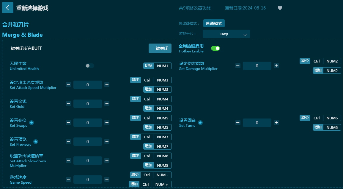 《合并和刀片》是一款最新的像素风策略战争游戏,移动小兵布局来战斗。六蓝游戏网提供《合并和刀片修改器》下载,能为玩家提供无限生命、设置金钱、设置伤害、设置交换、设置回合、游戏速度等九项强力辅助,帮助玩家更轻松通关游戏!有需要的朋友不要错过,六蓝游戏网推荐大家下载体验!