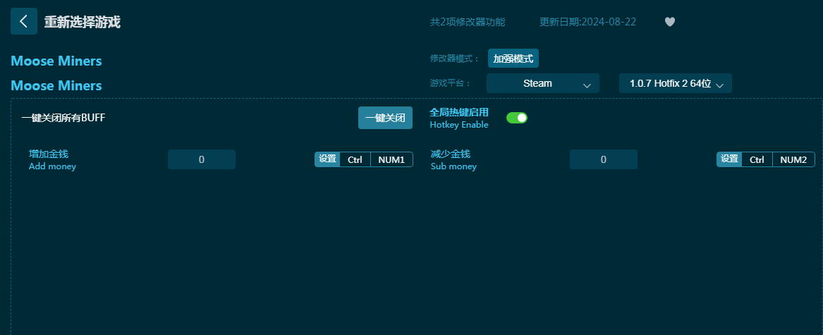 《MooseMiners》中文名(驼鹿矿工)是一款最新的休闲模拟经营游戏,由驼鹿运营的采矿业务,挖出更多宝石来售卖。这款《MooseMiners修改器》能为玩家提供修改金钱等游戏辅助功能,帮助玩家更换矿工装备,挖矿更轻松!感兴趣的朋友不要错过,六蓝游戏网推荐大家下载体验!