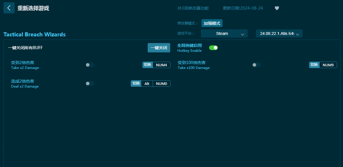 4、先运行游戏再运行修改器,有普通模式和加强模式两种,游戏运行后点击右侧的激活按钮激活修改器。
