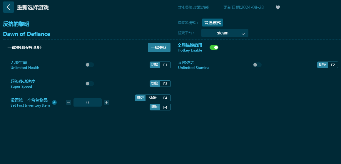 《反抗的黎明》是一款最新的开放世界生存建造游戏。从一个弱小的士兵变成反抗英雄。六蓝游戏网为大家提供《反抗的黎明修改器》下载,专为游戏制作,可提供玩家无限生命、超级移动速度、无限体力、设置物品等强力辅助。辅助功能实时更新,免费使用,帮助玩家游戏体验更佳!感兴趣的朋友不要错过,六蓝游戏网推荐大家下载体验!