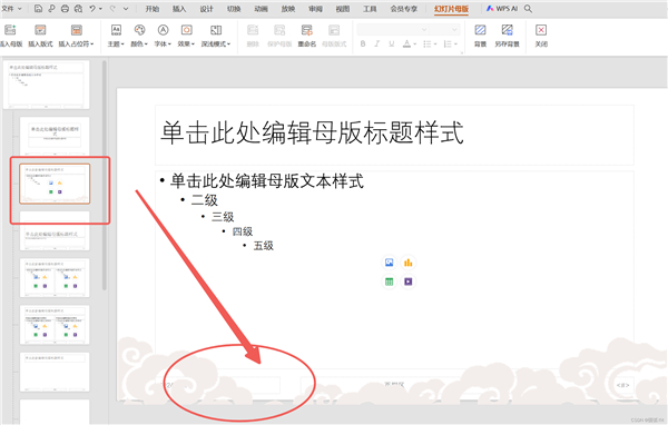 1、双击母版,选择其中一个版式,插入装饰符号;