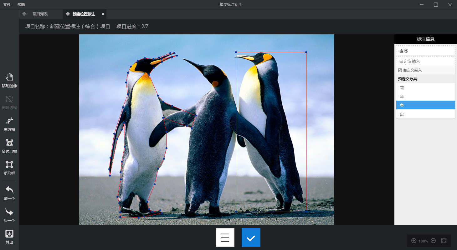 2、提供矩形框、多边形、曲线定位、3D定位、文本分类、实体标注、视频跟踪等功能。