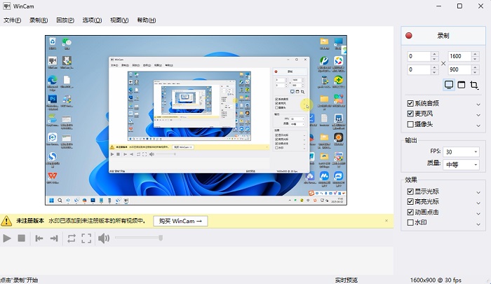 5、录制前可实时预览并调整视频源、帧率及后处理效果,无需开始录制即可确认设置。